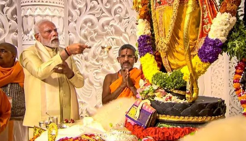 അയോധ്യയിലെ പ്രതിഷ്ഠ ചടങ്ങിന് നേതൃത്വം നല്കി പ്രധാനമന്ത്രി മോദി