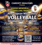 കാര്‍ഡിഫ് മലയാളി സമൂഹത്തിന് നല്ല ഓര്‍മ്മകള്‍ സമ്മാനിച്ചു കടന്നുപോയ പ്രിയങ്കരനായ ആശിഷിന്റെ സ്മരണാര്‍ത്ഥം'ആശിഷ് മെമ്മോറിയല്‍ എവര്‍ റോളിംഗ് ട്രോഫി' ഓള്‍ യൂറോപ്യന്‍ മലയാളി വോളിബോള്‍ ടൂര്‍ണമെന്റ് സംഘടിപ്പിക്കുന്നു. കാര്‍ഡിഫ് ഡ്രാഗണ്‍സിന്റെ നേതൃത്വത്തില്‍ മാര്‍ച്ച് ഏഴിന് ശനിയാഴ്ച കാര്‍ഡിഫിലെ സോഫിയ ഗാര്‍ഡന്‍സിലുള്ള സ്പോട്ട് വെയില്‍സ് സെന്ററിലാണ് ഈ വലിയ കായിക മാമാങ്കം അരങ്ങേറുന്നത്. രാവിലെ 9.30 മുതല്‍ വൈകുന്നേരം 7.30 വരെ നീണ്ടുനില്‍ക്കുന്ന മത്സരങ്ങളില്‍ യൂറോപ്പിലെ വിവിധ രാജ്യങ്ങളില്‍ നിന്നുള്ള കരുത്തുറ്റ മലയാളി വോളിബോള്‍ ടീമുകള്‍ മാറ്റുരയ്ക്കും. കേരളത്തിലെയും ഇന്ത്യയിലെയും പ്രമുഖ സര്‍വ്വകലാശാലകളിലും ഡിപ്പാര്‍ട്ട്‌മെന്റുകളിലും കളിച്ച് പരിചയമുള്ള പ്രഗത്ഭരായ താരങ്ങളുടെ സാന്നിധ്യം ഈ ടൂര്‍ണമെന്റിനെ അതീവ ആവേശകരമാക്കും. കാര്‍ഡിഫ് ലോര്‍ഡ് മേയര്‍ അഡ്രിയന്‍ റോബ്‌സണ്‍, കൗണ്‍സിലര്‍ ജെയ്ന്‍ കോവാന്‍,