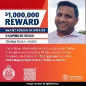 മെല്ബണ് : ഓസ്ട്രേലിയന് യുവതിയെ കൊലപ്പെടുത്തിയ ശേഷം മുങ്ങിയ ഇന്ത്യക്കാരനായ നഴ്സിനെ കണ്ടെത്താന് സഹായിക്കുന്നവര്ക്ക് 10 ലക്ഷം ഡോളര് ഇനാം പ്രഖ്യാപിച്ച് പോലീസ്. ഓസ്ട്രേലിയയിലെ ക്യൂന്സ്ലാന്ഡ് പോലീസ് ആണ് ഇനാം പ്രഖ്യാപിച്ചത്. രാജ്വിന്ദര് സിംഗ് (38) എന്ന നഴ്സിനെയാണ് പോലീസ് തേടുന്നത്.