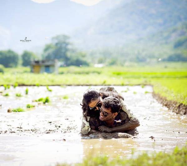പാടത്തെ ചെളിയില് കിടന്നുരുണ്ടാണ് ഇരുവരുടേയും പരീക്ഷണ ഫോട്ടോഷൂട്ട്. ദേഹമാസകലം ചെളിയില് പൊതിഞ്ഞുള്ള റൊമാന്റിക് ചിത്രങ്ങളാണ് ഹൈലൈറ്റ്.