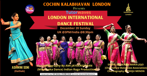 കൊച്ചിന് കലാഭവന് ലണ്ടന് അവതരിപ്പിക്കുന്ന ലണ്ടന് ഇന്റര്നാഷണല് ഡാന്സ് ഫെസ്റ്റിവല് വ്യത്യസ്തങ്ങളായ നൃത്ത പരിപാടികളും അവതരണവ ശൈലിയും കൊണ്ട് ശ്രദ്ധേയമാകുകയാണ്. നൃത്തോത്സവത്തിന്റെആറാമത്തെ വാരമായ ഡിസംബര് 20 ഞായറാഴ്ച്ച ഉച്ചകഴിഞ്ഞ് യുകെ സമയം 3 മണിക്ക് (ഇന്ത്യന് സമയം 8:30) കഥക് നൃത്തം അവതരിപ്പിക്കുന്നത് ഡല്ഹിയില് നിന്നുള്ള നര്ത്തകി അശ്വനി സോണിയാണ്. യുകെ ടോപ് ടാലെന്റ്സ് വിഭാഗത്തില് നൃത്തം അവതരിപ്പിക്കുന്നത്, യുക്മ കലാമേളകളില് നിരവധി തവണ കലാതിലകമായിട്ടുള്ള സ്നേഹ സജിയും ആന് മരിയ ജോജോയുംചേര്ന്നാണ്. ചെംസ്ഫോര്ഡ് മലയാളി അസോസിയേഷനിലെ അംഗങ്ങളായ ഇവര് അവതരിപ്പിക്കുന്ന നൃത്തംകൊറിയോഗ്രാഫി ചെയ്തിരിക്കുന്നത് യുകെയില് നിന്നുള്ള പ്രശസ്ത നര്ത്തകനും നൃത്ത അദ്ധ്യാപകനുമായ ഷിജു മേനോനാണ്.