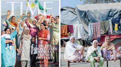 അന്തരാഷ്ട്രതലത്തില് വീണ്ടും ചര്ച്ചയായി ഇന്ത്യയിലെ കര്ഷക സമരം. ടൈം മാഗസിന്റെ പുതിയ അന്താരാഷ്ട്ര കവര് പേജില് ഇന്ത്യയില് കാര്ഷിക നിയമങ്ങള്ക്കെതിരെ പ്രക്ഷോഭം നടത്തുന്ന സ്ത്രീകളുടെ ചിത്രമാണ് . കൈയില് കുട്ടികളെയുമെടുത്ത് മുദ്രാവാക്യം വിളിക്കുന്ന ഇന്ത്യന് സ്ത്രീകളുടെ ചിത്രമാണ് കവര് ഫോട്ടോയില് ഉള്ളത്. 'On the Front lines of Indias farmer protests' എന്ന തലക്കേട്ടിലാണ് ഫോട്ടോ പ്രസിദ്ധീകരിച്ചിരിക്കുന്നത്.