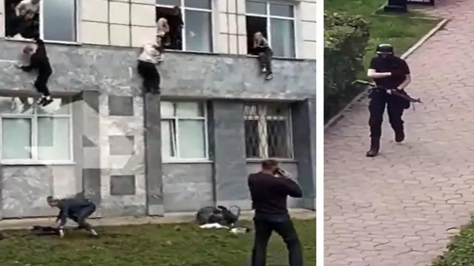 വെടിവെപ്പില് നിന്ന് രക്ഷപ്പെടാനായി വിദ്യാര്ത്ഥികള് കാമ്പസ് കെട്ടിടത്തിന്റെ ജനലിലൂടെ ചാടുന്ന വീഡിയോ സമൂഹമാധ്യമങ്ങളില് പ്രചരിച്ചിരുന്നു. റഷ്യയിലെ പ്രമുഖ മാധ്യമ സ്ഥാപനമായ റെന് ടി.വിയാണ് ഫൂട്ടേജ് പുറത്തു വിട്ടത്.