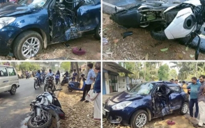 വാഴൂര് റോഡില് പൂവത്തുംമൂട് എന്ന സ്ഥലത്ത് വച്ച് ഇവര് സഞ്ചരിച്ചിരുന്ന സ്വിഫ്റ്റ് കാറില് എതിരെ സ്പീഡില് വന്ന ബൈക്ക് ഇടിക്കുകയായിരുന്നു. തുടര്ന്ന് നിയന്ത്രണം നഷ്ടമായ കാര് മറ്റൊരു ഓട്ടോയിലും ഇടിച്ചു.