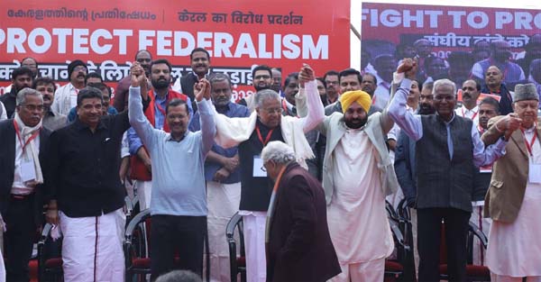 കേന്ദ്ര സര്ക്കാരിന്റെ സംസ്ഥാനത്തോടുള്ള അവഗണനയ്ക്കെതിരെ മുഖ്യമന്ത്രി പിണറായി വിജയന്റെ നേതൃത്വത്തില് ഡല്ഹിയില് നടക്കുന്ന പ്രതിഷേധത്തിന് പിന്തുണയുമായി ഡല്ഹി മുഖ്യമന്ത്രി അരവിന്ദ് കെജ്രിവാളും പഞ്ചാബ് മുഖ്യമന്ത്രി ഭഗ്വന്ദ് മന്നും. ഇരുവരും കേരളത്തിന്റെ സമരപന്തലില് എത്തി പിന്തുണ പ്രഖ്യാപിച്ചു. ഡിഎംകെയെ പ്രതിനിധീകരിച്ച് തമിഴ്നാട് മന്ത്രി പളനിവേല് ത്യാഗരാജനും മുന് ജമ്മു കശ്മീര് മുഖ്യമന്ത്രി ഫാറൂഖ് അബുല്ലയും സമരത്തില് പങ്കെടുക്കുന്നുണ്ട്.