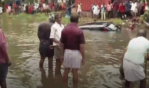 മുങ്ങിപ്പോയ കാര് 150 മീറ്റര് കെട്ടിവലിച്ചാണ് കരയിലേക്ക് കൊണ്ടുവന്നത്. വഴിയുടെ ഈ തിരിവ് മനസ്സിലാക്കാതെ മുമ്പും ഇവിടെ വാഹനങ്ങള് അപകടത്തില് പെട്ടിട്ടുണ്ടെന്നാണ് വിവരം. ഇവിടെ റോഡ് സുരക്ഷാ വകുപ്പിന്റെയോ പഞ്ചായത്തിന്റേയോ ശ്രദ്ധിക്കുന്ന നിലയിലുള്ള സൂചനാബോര്ഡുകള് ഇല്ലാത്തതില് ശക്തമായ വിമര്ശനം ഉയരുന്നുണ്ട്. മുമ്പ് നടന് രാജന്പി. ദേവ് സഞ്ചരിച്ച വാഹനവും ഇവിടെ അപകടത്തില് പെട്ടിട്ടുള്ളതായി നാട്ടുകാര് ഓര്ക്കുന്നു.