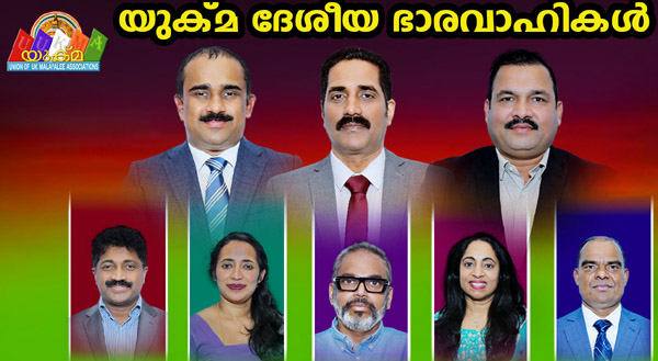 2025 - 2027 വര്ഷത്തേക്കുള്ള യുക്മയുടെ പുതിയ ഭാരവാഹികളായി പ്രസിഡന്റ് അഡ്വ. എബി സെബാസ്റ്റ്യന് (ഡാര്ട്ട്ഫോര്ഡ്, സൗത്ത് ഈസ്റ്റ്) ജനറല് സെക്രട്ടറിയായി ജയകുമാര് നായര് (വെനെസ്ഫീല്ഡ്, മിഡ്ലാന്ഡ്സ്), ട്രഷററായി ഷിജോ വര്ഗീസ് (വാറിംഗ്ടണ്, നോര്ത്ത് വെസ്റ്റ്), വൈസ് പ്രസിഡന്റ് വര്ഗീസ് ഡാനിയേല് ( ഷെഫീല്ഡ്, യോര്ക് ഷെയര് & ഹംമ്പര്) സ്മിതാ തോട്ടം (സട്ടന് കോള്ഫീല്ഡ്, മിഡ്ലാന്ഡ്സ്), ജോയിന്റ് സെക്രട്ടറി സണ്ണിമോന് മത്തായി (വാറ്റ്ഫോര്ഡ്, ഈസ്റ്റ് ആംഗ്ലിയ), റെയ്മോള് നിധിരി (സ്വിന്ഡന്, സൗത്ത് വെസ്റ്റ് ), ജോയിന്റ് ട്രഷറര് പീറ്റര് താണോലില് (അബര്സ്വിത്ത്, വെയില്സ്) എന്നിവരെയാണ് ജനറല് കൗണ്സില് യോഗം ഐകകണ്ഡേന തിരഞ്ഞെടുത്തത്.