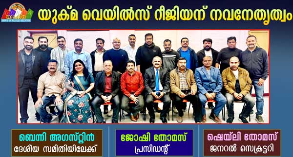 യുക്മ വെയില്സ് റീജിയന് നവനേതൃത്വം; ബെന്നി അഗസ്റ്റിന് ദേശീയസമിതിയിലേക്ക്,ജോഷി തോമസ് പ്രസിഡന്റ്, ഷെയ്ലി തോമസ് ജനറല് സെക്രട്ടറി
