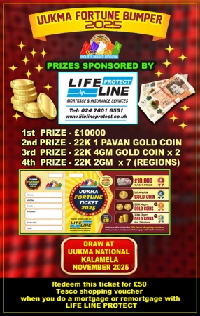 യുക്മ ഫോര്ച്യൂണ് ബംമ്പര് 2025 ലോട്ടറിയുടെ മുഴുവന് സമ്മാനങ്ങളും സ്പോണ്സര് ചെയ്തിരിക്കുന്നത് ലൈഫ് ലൈന് പ്രൊട്ടക്ട് ലിമിറ്റഡാണ്. യുക്മ ഫോര്ച്യൂണ് ബംമ്പര് 2025 ലോട്ടറി എടുത്ത ആളുകള് ലൈഫ് ലൈന് പ്രൊട്ടക്ട് ലിമിറ്റഡിലൂടെ മോര്ട്ട്ഗേജ്, റീമോര്ട്ട്ഗേജ് ഇവയില് ഏതെങ്കിലും ചെയ്താല് 50 പൌണ്ടിന്റെ ടെസ്കോ വൌച്ചര് പ്രോത്സാഹന സമ്മാനമായി ലഭിക്കുന്നതാണ്.