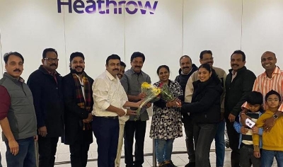 യുകെയിലെത്തിയ ജല വിഭവ വകുപ്പ് മന്ത്രിയും കേരളാ കോണ്ഗ്രസ് (എം) നേതാവുമായ റോഷി അഗസ്റ്റിനെ പ്രവാസി കേരളാ കോണ്ഗ്രസ് (എം) പ്രതിനിധികള് ലണ്ടന് ഹീത്രു എയര്പോര്ട്ടില് സ്വീകരിച്ചു. പ്രവാസി കേരള കോണ്ഗ്രസ് (എം) മുന് യുകെ ഘടകം പ്രസിഡന്റ് ഷൈമോന് തോട്ടുങ്കല്, മുന് ഓഫീസ് ചാര്ജ് സെക്രട്ടറി ടോമിച്ചന് കൊഴുവനാല്, സീനിയര് നേതാവും സെക്രട്ടറിയുമായ സി എ ജോസഫ്, മുന് നാഷണല് ട്രഷര് ജെയ്മോന് വഞ്ചിത്താനം, സീനിയര് നേതാവ് ജോയ് വള്ളുവന്കോട്, യുകെ ഘടകം ഓഫീസ് ചാര്ജ് സെക്രട്ടറി ജിജോ അരയത്ത്, സൗത്ത് ഈസ്റ്റ് റീജിയണ് പ്രസിഡന്റ് ജോഷി സിറിയക്, നാഷണല് കമ്മിറ്റി അംഗങ്ങളായ ടോണി സെബാസ്റ്റിയന് കാവാലം, ജീത്തു പൂഴിക്കുന്നേല് തുടങ്ങിയവര് സന്നിഹിതരായിരുന്നു.