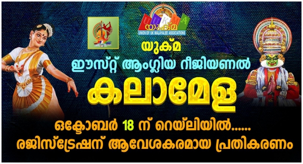 ഇനിയും രെജിസ്ട്രേഷന് നടത്തിയിട്ടില്ലാത്തവര് തങ്ങളുടെ അസോസിയേഷനുമായി ബന്ധപ്പെട്ട് എത്രയും വേഗം നടപടികള് പൂര്ത്തിയാക്കണമെന്ന് ഈസ്റ്റ് ആംഗ്ലിയ റീജണല് ഭാരവാഹികള് അറിയിച്ചു.കലാകാരുടെ പ്രതിഭയും, ഭാവനയും, കഴിവും നിറഞ്ഞ കലയുടെ മത്സരവേദിയില് മാറ്റുരക്കുവാനും കലയുടെ വര്ണ്ണവസന്തം ആസ്വദിക്കുവാനും ഏവരെയും സഹര്ഷം സ്വാഗതം ചെയ്യുന്നു.