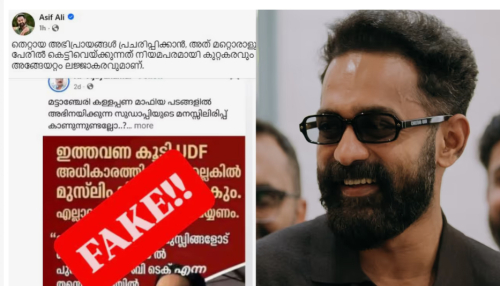 നടന് ആസിഫ് അലിയുടെ പേരില് സമൂഹ മാധ്യമങ്ങളിലൂടെ വ്യാജ പ്രചരണം. വര്ഗ്ഗീയ പരാമര്ശമുള്ള ഫേസ്ബുക്ക് പോസ്റ്റിനെതിരെ രൂക്ഷ വിമര്ശനവുമായി ആസിഫ് അലി തന്നെ രംഗത്തെത്തി. ഇത്തവണ കൂടി യുഡിഎഫ് അധികാരത്തില് വന്നില്ലെങ്കില് മുസ്ലീം ലീഗ് ഇല്ലാതാകുമെന്നും, സംഘപരിവാര് എന്താണ് മുസ്ലിംകളോട്