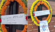 'അച്ഛന് ഇല്ലാത്ത അമ്മയ്ക്ക്'; കൊച്ചിയിലെ അമ്മ ഓഫീസിന് മുന്നില് റീത്ത് വച്ച് പ്രതിഷേധം