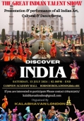 'ഡിസ്കവര് ഇന്ത്യ' എന്ന പേരിട്ടിരിക്കുന്ന ഈ പരിപാടിയില് പെര്ഫോം ചെയ്യാന് താല്പര്യമുള്ള ഏതെങ്കിലും ഇന്ത്യന് ആര്ട്ട്സ് രൂപങ്ങളുടെ അവതരണത്തില് പാടവവും വേദിയില് അവതരിപ്പിച്ചുപരിചയവുമുള്ളവര് ദയവായി ഉടന്തന്നെ കലാഭവന് ലണ്ടനുമായി ബന്ധപ്പെടുക. ജൂലൈ 13 ശനിയാഴ്ച്ച