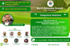 ലണ്ടന് : വേള്ഡ് മലയാളി കൗണ്സില് യുകെ ഒരുക്കുന്ന 'ആയുര്വേദ 'സെമിനാര് ഞായറാഴ്ച വൈകുന്നേരം യുകെ സമയം 6 മണിക്ക് സൂം പ്ലാറ്റുഫോമില്. ആയുര്വേദത്തിന്റ അനന്ത സാധ്യതയെ കുറിച്ചു ലിങ്കന് യൂണിവേഴ്സിറ്റി ലെക്ചര് ആയി വര്ക്ക് ചെയ്യുന്നതും യുകെയില് പല സ്ഥലത്തു ആയുര്വേദ ക്ലിനിക് നടത്തുന്ന ഡോ :ശ്രീനാഥ് നായര് സംവാദം നടത്തുന്നു. ഈ പ്രോഗ്രാമിലേക്ക് ഏവരെയും വേള്ഡ് മലയാളി കൗണ്സില് ഭാരവാഹികള് സ്വാഗതം ചെയ്തു. കൂടുതല് വിവരങ്ങള്ക്ക് www.wmcuk.org or ഭാരവാഹികളുമായി നേരിട്ട് ബന്ധപ്പെടുക.