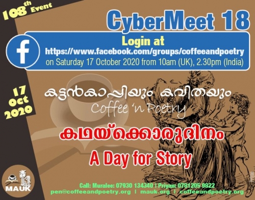 ഈ വരുന്ന ശനിയാഴ്ച ഒരു ദിനം മുഴുവന് ആഗോളതലത്തില് എവിടെയിരുന്നും ആര്ക്കും സ്വന്തം കഥയോ മറ്റൊരാളുടെ കഥയോ അവതരിപ്പിക്കുവാന് അവസരം ഒരുക്കുകയാണ് 'മലയാളി അസോസ്സിയേഷന് ഓഫ് ദി യു.കെ' യുടെ കലാസാഹിത്യ വിഭാഗമായ 'കട്ടന് കാപ്പിയും കവിതയും കൂട്ടായ്മ' .