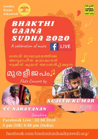 ലണ്ടന് ഹിന്ദു ഐക്യവേദിയുടെ ആഭിമുഖ്യത്തില് ശനിയാഴ്ച മുതല് യുകെയിലെയും ഇന്ത്യയിലെയും കലാകാരന്മാരെ പങ്കെടുപ്പിച്ചുകൊണ്ട് ഐക്യവേദിയുടെ ഫേസ്ബുക് പേജ് വഴി ഭക്തി ഗാനസുധ ആരംഭിക്കും. വരുന്ന ശനിയാഴ്ചകളില് യുകെ സമയം വൈകിട്ട് 5 മണി (ഇന്ത്യന് സമയം രാത്രി 9 :30) മുതല് പരിപാടികള് ആരംഭിക്കും.