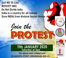 വിവാദ പൗരത്വ നിയമ ഭേദഗതിക്കെതിരെ ബര്മിങ്ഹാം ഇന്ത്യന് കോണ്സുലേറ്റിനു മുന്നില് പ്രതിഷേധം തീര്ത്ത് ഇന്ത്യന് വംശജര് . ഇടതുപക്ഷ പുരോഗമന പ്രസ്ഥാനങ്ങളായ ഇന്ത്യന് വര്ക്കേഴ്സ് അസോസിയേഷന് , സമീക്ഷ യുകെ , ചേതന , ക്രാന്തി എന്നീ സംഘടനകള് ആണ് ഞായറാഴ്ച നടന്ന പ്രതിഷേധസംഗമത്തിന് നേതൃത്വംകൊടുത്തത് .