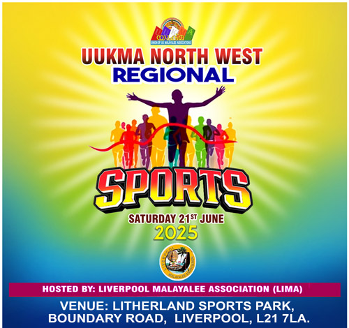 ലിവര്പൂള് മലയാളി അസോസിയേഷന് (ലിമ) ആതിഥേയത്വം വഹിക്കുന്ന യുക്മ നോര്ത്ത് വെസ്റ്റ് റീജിയണ് കായികമേള ജൂണ് 21 തീയതി ലിവര്പൂളിലെ ലിതെര്ലാന്ഡ് സ്പോര്ട്സ് പാര്ക്കില് (Litherland Sports Park, Boundary Rd, Litherland, Liverpool L21 7LA) വച്ച് നടത്തപ്പെടുന്നു.