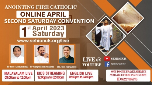 ദുഃഖ ശനി പ്രമാണിച്ച് അഭിഷേകാഗ്നി രണ്ടാം ശനിയാഴ്ച്ച കണ്വെന്ഷന് പതിവില്നിന്നും വ്യത്യസ്തമായി ഇത്തവണ ഏപ്രില് 1ന് നാളെ ഓണ്ലൈനില് നടക്കും . ഗ്രേറ്റ് ബ്രിട്ടന് രൂപത മാഞ്ചസ്റ്റര് റീജിയണ് ഡയറക്ടറും പ്രശസ്ത വചന പ്രഘോഷകനുമായ ഫാ ജോസ് അഞ്ചാനിക്കല് ഫാ ഷൈജു നടുവത്താനിയിലിനൊപ്പം കണ്വെന്ഷന് നയിക്കും .2009 ല് ഫാ. സോജി ഓലിക്കല് തുടക്കമിട്ട സെഹിയോന് യുകെ രണ്ടാം ശനിയാഴ്ച്ച