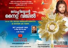 പ്രശസ്ത വചനപ്രഘോഷകനും സെഹിയോന് യുകെ ഡയറക്ടറുമായ റവ.ഫാ.ഷൈജു നടുവത്താനിയിലും സെഹിയോന് ടീമും നയിക്കുന്ന നൈറ്റ് വിജില് രാത്രി 9 മുതല് 12 വരെയാണ് നടക്കുക.