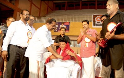 കാജു കാഡോ കരാട്ടെ ആന്ഡ് മാര്ഷ്യല് അക്കാദമി സംഘടിപ്പിച്ച അഖിലേന്ത്യാ മാര്ഷ്യല് ആര്ട്സ് ഫുള് കോണ്ട്രാക്ട് ടൂര്ണമെന്റ് വേദിയില് കരാട്ടെ,കുങ്ഫു ഫൈറ്ററും 812 km.Run യൂനിക് വേള്ഡ് റെക്കോര്ഡ് ഹോള്ഡറും ആയ ഡോ ബോബി ചെമ്മണൂരിനെ മേയര് തോട്ടത്തില് രവീന്ദ്രന് ആദരിച്ചു.