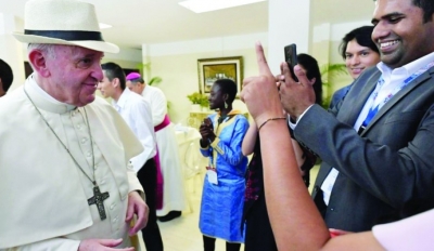 പാനമ സിറ്റി: ലോകം ആദരവോടെ കാണുന്ന ഫ്രാന്സിസ് മാര്പാപ്പയ്ക്കൊപ്പം ഉച്ചഭക്ഷണം കഴിക്കാന് ഭാഗ്യം ലഭിച്ചതിന്റെ ആവേശത്തിലാണ് മലയാളിയായ ബെഡ്വിന് ടൈറ്റസ്. മാര്പാപ്പയുടെ പാനമ സന്ദര്ശനവേളയിലാണ് ബെഡ്വിനും ഓസ്ട്രേലിയന് പൗരനായ ഡെന്നിസ് മൊന്റാനോ ഗല്ഡമേസിനും അദ്ദേഹത്തോടൊപ്പം ഉച്ചഭക്ഷണം കഴിച്ചത്.