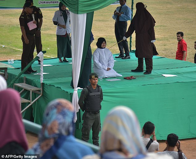 നിരവധി കാണികള്ക്ക് മുന്നില് വെച്ചാണ് ശിക്ഷ നടപ്പാക്കിയത്. എന്നാല് കാഴ്ചക്കാരില് നിന്നും കുട്ടികളെ ഒഴിവാക്കിയിരുന്നു. ലോകത്തെ ഏറ്റവും അധികം മുസ്ലീങ്ങള് ഉള്ള രാജ്യമാണ് ഇന്തോനേഷ്യ. അസേഹില് മാത്രമാണ് ഇപ്പോഴും ഇസ്ലാമിക നിയമങ്ങളില് ശിക്ഷ നടപ്പാക്കുന്നത്.