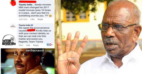 മണിയാശാന്റെ ഫെയ്സ്ബുക്ക് പേജ് കഴിഞ്ഞാല് ട്രോളന്മാര് വിളയാടുന്നത് ടൊയോട്ടയുടെ പേജിലാണ്. ടൊയോട്ടയുടെ ഇന്നോവോ ക്രിസ്റ്റയാണ് മന്ത്രി ഉപയോഗിക്കുന്നത്.ട്രോളന്മാര്ക്ക് വിശദീകരണം നല്കി നല്കി ആ പേജിന്റെ അഡ്മിന്മാരും കുഴങ്ങി.
