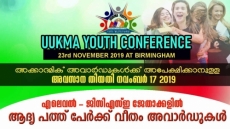 കഴിഞ്ഞ അദ്ധ്യായന വര്ഷം ജി സി എസ് ഇ, എ-ലെവല് എന്നീ പരീക്ഷകളില് ഉന്നത വിജയം നേടിയ വിദ്യാര്ത്ഥികള്ക്ക് യുവജന ദിനാഘോഷങ്ങളോടനുബന്ധിച്ച് അവാര്ഡുകള് നല്കി യുക്മ ആദരിക്കുന്നതാണ്. ഏതൊരു യു കെ മലയാളി വിദ്യാര്ത്ഥികള്ക്കും ഈ അവാര്ഡുകള്ക്ക് അപേക്ഷിക്കാവുന്നതാണ്. ഇതിനായി 2019 ല് ജി സി എസ് ഇ, എ-ലെവല് പരീക്ഷകളില് വിജയിച്ച വിദ്യാര്ത്ഥികളോ അവരുടെ രക്ഷിതാക്കളോ ആണ് അപേക്ഷിക്കേണ്ടത്. ഇതിനായി uukmayouth10@gmail.com എന്ന ഇ-മെയില് വിലാസത്തിലേക്ക് മാര്ക്ക് ലിസ്റ്റിന്റെ കോപ്പികള് അയക്കേണ്ടതാണ്.
