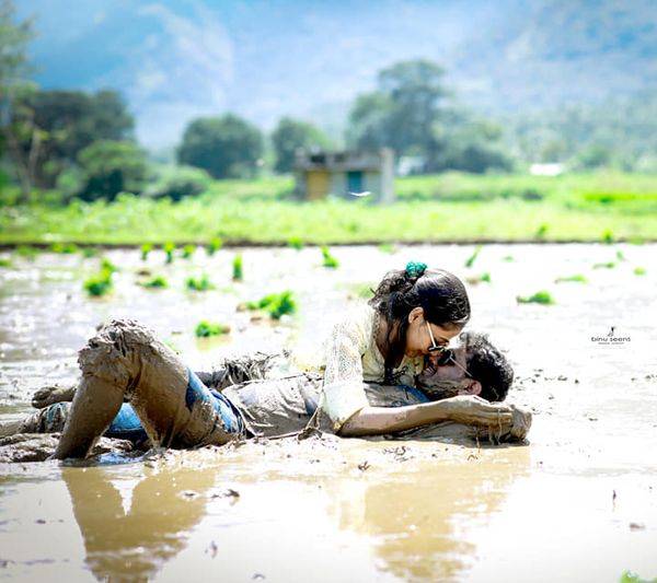 പാടത്തെ ചെളിയില് കിടന്നുരുണ്ടാണ് ഇരുവരുടേയും പരീക്ഷണ ഫോട്ടോഷൂട്ട്. ദേഹമാസകലം ചെളിയില് പൊതിഞ്ഞുള്ള റൊമാന്റിക് ചിത്രങ്ങളാണ് ഹൈലൈറ്റ്.