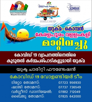 യുക്മ നടത്തുന്ന പരിപാടികളില് ഏറ്റവും ബൃഹത്തായ ഒന്നാണ് വള്ളംകളി. ഏകദേശം നൂറോളും വരുന്ന വോളണ്ടിയര്മാരുടെ സ്വാഗതസംഘമാണ് എല്ലാ വര്ഷവും ഇതിന്റെ നടത്തിപ്പിനായി സഹകരിച്ചു വരുന്നത്. കഴിഞ്ഞ വര്ഷം വള്ളംകളിയുടെ നടത്തിപ്പിന് രൂപീകരിച്ച സ്വാഗതസംഘം കാര്യമായ മാറ്റങ്ങളിലാതെ തന്നെ തുടരുന്നതിനായിരുന്നു യുക്മ ദേശീയ ഭരണസമിതി തീരുമാനമെടുത്തിരുന്നത്. എന്നാല് പുതിയ സാഹചര്യത്തില് യുക്മ ചാരിറ്റി ഫൗണ്ടേഷന്റെ നേതൃത്വത്തില് തുടക്കമിട്ടിരിക്കുന്ന 'കോവിഡ്-19 : ക്രൈസിസ് വോളണ്ടിയര് ഗ്രൂപ്പ്' പ്രവര്ത്തനങ്ങളുമായി സഹകരിച്ച് പ്രവര്ത്തിക്കുന്നതിന് വള്ളംകളിയുടെ സ്വാഗതസംഘത്തെ പൂര്ണ്ണമായും വിനയോഗിക്കുന്നതായിരിക്കുമെന്ന് യുക്മ ദേശീയ ജനറല് സെക്രട്ടറി അലക്സ് വര്ഗ്ഗീസ് അറിയിച്ചു.