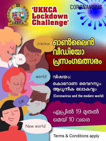 ആധുനിക ലോകരാജ്യങ്ങളെല്ലാം നേരിടുന്ന ഈ മഹാവിപത്തിനെക്കുറിച്ചു സമുദായ അംഗങ്ങള്ക്കിടയില് കൂടുതല് ബോധവല്ക്കരിയ്ക്കുന്നതിനായി UKKCA,14 വയസിനു മുകളിലുള്ള യൂണിറ്റ് അംഗങ്ങള്ക്കായി ലോക്ക് ഡൗണ് ചലഞ്ച് ഓണ്ലൈന് വീഡിയോ പ്രസംഗ മത്സരം നടത്തുന്നു.