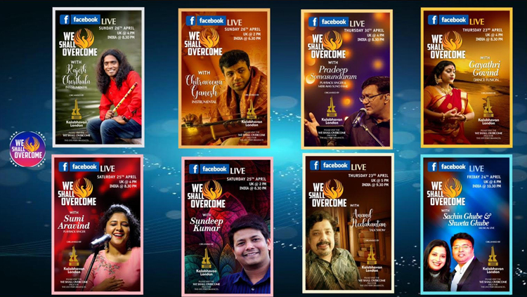ലോകത്തിന്റെ വിവിധ ഭാഗങ്ങളില് നിന്നും പ്രമുഖരായ നിരവധി കലാ പ്രവര്ത്തകര് നമ്മുടെ മനസ്സുകള്ക്ക് സാന്ത്വനവുമായി തുടര്ന്നും'വീ ഷാല് ഓവര് കം' എന്ന പരിപാടിയിലൂടെ നമ്മുടെ മുന്നില് എത്തുന്നതാണ് . കലാഭവന് ലണ്ടന് ഡയറക്ടര് ജെയ്സണ് ജോര്ജ് , സംഘാടകരായ ദേവ ലാല് സഹദേവന്, ഹരീഷ് പാലാ തുടങ്ങിയവരാണ് ഈ സംരംഭത്തിന്റെ പിന്നണിയില്.