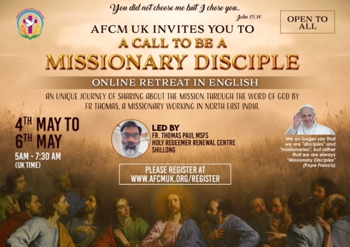 സുവിശേഷ വേലയില് ദൈവ കരുണയുടെ ജീവിക്കുന്ന പ്രതിരൂപമായിക്കൊണ്ട്, മിഷിനറി ജീവിതത്തിന്റെ വെളിച്ചത്തില് യഥാര്ത്ഥ സുവിശേഷവേലയുടെ മഹത്വം പ്രഘോഷിച്ചുകൊണ്ട്, പ്രമുഖ മിഷിനറിയും എം എസ് എഫ് എസ് കോണ്ഗ്രിഗേഷന് ഷില്ലോങ് ഹോളി റെഡീമര് റിന്യൂവല് സെന്റര് അസിസ്റ്റന്റ് സുപ്പീരിയറുമായ റവ.ഫാതോമസ് പോള് നയിക്കുന്ന മൂന്ന് ദിവസത്തെ പ്രത്യേക ധ്യാനം ലോക്ഡൗണിന്റെ പശ്ചാത്തലത്തില് ഓണ്ലൈനായി നടക്കുന്നു .