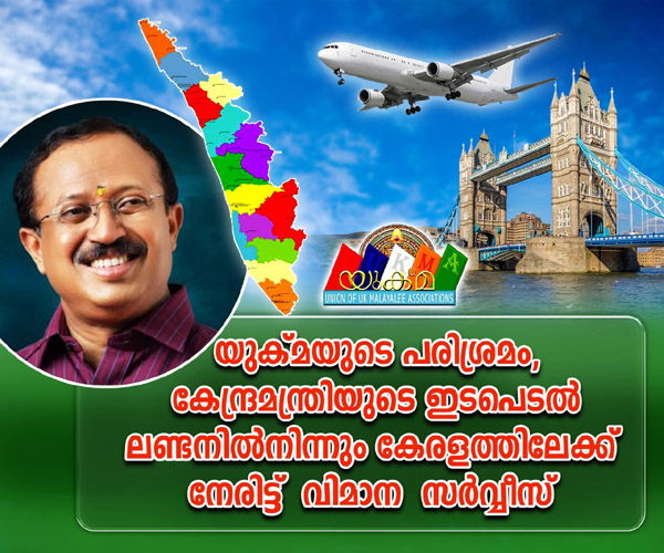 യുക്മയുടെ പരിശ്രമം ലക്ഷ്യം കണ്ടു; കേന്ദ്രമന്ത്രിയുടെ ഇടപെടലില് ലണ്ടനില്നിന്നും കേരളത്തിലേയ്ക്ക് നേരിട്ട് വിമാന സര്വീസ്