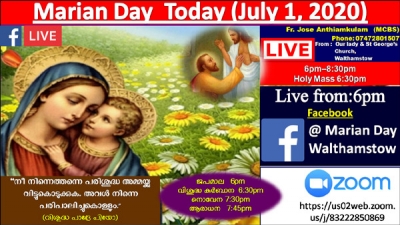 വാല്താംസ്റ്റോ: വാല്താംസ്റ്റോ സെ.മേരീസ് & ബ്ലസ്സഡ് കുഞ്ഞച്ചന് മിഷനില് (ഔവര് ലേഡി ആന്ഡ് സെന്റ് ജോര്ജ് പള്ളിയില്) ഇന്ന് മരിയന് ദിന ശുശ്രൂഷ ഓണ്ലൈനില് ഉണ്ടായിരിക്കുന്നതാണ് .