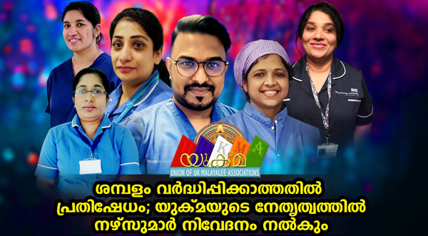 ഈ സാഹചര്യത്തില്, സര്ക്കാരിന്റെ വേതനവര്ദ്ധനവിലെ അധാര്മ്മീകത പരിഹരിച്ചുകൊണ്ട് മറ്റു പൊതുമേഖലാ ജീവനക്കാര്ക്കൊപ്പം, എത്രയുംവേഗം നേഴ്സിംഗ് ജീവനക്കാര്ക്കും ശമ്പള വര്ദ്ധനവ് നടപ്പിലാക്കണം എന്നാവശ്യപ്പെട്ടുകൊണ്ട് യുക്മ ദേശീയ കമ്മറ്റി മുന്നിട്ടിറങ്ങുകയാണെന്ന് ദേശീയ പ്രസിഡന്റ് മനോജ്കുമാര് പിള്ള, ജനറല് സെക്രട്ടറി അലക്സ് വര്ഗീസ് എന്നിവര് അറിയിച്ചു.