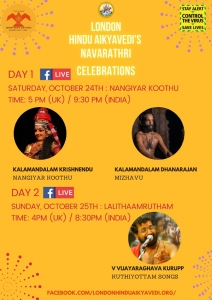 ലണ്ടന് ഹിന്ദു ഐക്യവേദിയുടെ ആഭിമുഖ്യത്തില് ഈ വര്ഷത്തെ മഹാനവമി- വിജയദശമി ആഘോഷങ്ങള് ഐക്യവേദിയുടെ ഫേസ്ബുക് പേജ് വഴി വിപുലമായി നടത്തും. വിജയത്തിന്റേയും ധര്മ്മ സംരക്ഷണത്തിന്റേയും സന്ദേശമാണ് നവരാത്രി നല്കുന്നത്. നവരാത്രി ദിവസങ്ങളിലെ ആദ്യ മൂന്ന് നാള് ദേവിയെ പാര്വ്വതിയായും അ ടുത്ത മൂന്ന് നാള് ലക്ഷിമിയായും അവസാന മൂന്ന് നാള് സരസ്വതിയായും സങ്കല്പ്പിച്ചാണ് പൂജ നടത്തുന്നത്. കേരളത്തില് അഷ്ടമി, നവമി, ദശമി എന്നീ ദിവസങ്ങള്ക്കാണ് നവരാത്രി ആഘോഷത്തില് പ്രാധാന്യം. കോവിഡ് മാനദണ്ഡങ്ങള് പാലിക്കേണ്ടതിനാല് പ്രതിവര്ഷം ഐക്യവേദിയുടെ ആഭിമുഖ്യത്തില് നടത്തിവരാറുള്ള കുരുന്നുകളുടെ വിദ്യാരംഭം ഈ വര്ഷം നടത്തുവാന് സാധിക്കുന്നതല്ലെന്നു സംഘടകര് അറിയിച്ചു.