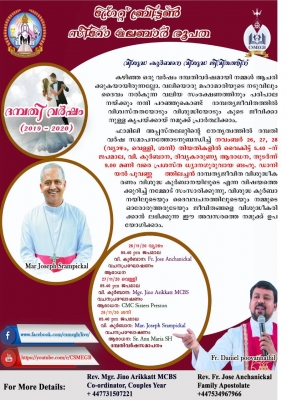 പ്രെസ്റ്റന് . ഗ്രേറ്റ് ബ്രിട്ടന് സീറോ മലബാര് രൂപതയില് പഞ്ചവത്സര അജപാലന പദ്ധതിയുടെ ഭാഗമായി ആചരിച്ച ദമ്പതീ വര്ഷാചരണം ഇന്നലെ കൊണ്ട് സമാപിച്ചതായും ഇന്ന് മുതല് വരുന്ന ഒരു വര്ഷത്തേക്ക് കുടുംബ കൂട്ടായ്മാ വര്ഷമായി ആചരിക്കുമെന്നും രൂപതാ കേന്ദ്രത്തില് നിന്നും അറിയിച്ചു . കഴിഞ്ഞ വര്ഷം ഡിസംബറില് ബര്മിങ്ഹാമില് രൂപതാധ്യക്ഷന് മാര് ജോസഫ് സ്രാമ്പിക്കല് ഉത്ഘാടനം ചെയ്ത ഒരു വര്ഷം നീണ്ടു നിന്ന ദമ്പതീവര്ഷാചരണം കോവിഡ് കാലമായിട്ടും ചലനാത്മകമായ ഒട്ടേറെ പരിപാടികളോടെ ആണ് സമാപിച്ചത് .