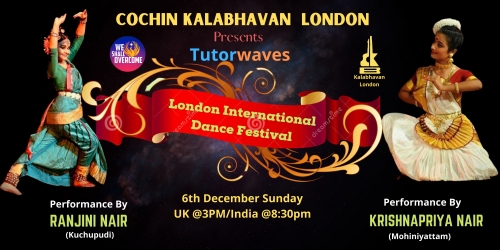 കൊച്ചിന് കലാഭവന് ലണ്ടന് നടത്തി വരുന്ന ഇന്റര്നാഷണല് ഡാന്സ് ഫെസ്റ്റിവല് പ്രേക്ഷകര്ക്ക് ആവേശംപകര്ന്ന് നാലാം വാരത്തിലേയ്ക്ക് കടക്കുന്നു. ദൂരദര്ശനിലെ ഗ്രേഡഡ് ആര്ട്ടിസ്റ്റുകളായ രഞ്ജിനി നായരുംകൃഷ്ണപ്രിയ നായരും ചേര്ന്ന് വരുന്ന ഞായറാഴ്ച്ച ഒരുക്കാന് പോകുന്നത് മോഹിനിയാട്ടത്തിന്റെയും കുച്ചിപ്പുടിയുടേയും മാസ്മരിക നൃത്തവിരുന്നാണ്. ലോകത്തിന്റെ വിവിധ ഭാഗങ്ങളില് നിന്നുള്ള പ്രശസ്തനര്ത്തകര് 'വീ ഷാല് ഓവര്കം' ഫേസ്ബുക് പേജിലൂടെ ലൈവ് നൃത്തം അവതരിപ്പിച്ചു വരുന്നതിലെപ്രൊഫഷണല് സെഗ്?മെന്റിലാണ് ഇരുവരും ഒത്തുചേരുന്നത്. പ്രശസ്ത ചലച്ചിത്ര താരവും നര്ത്തകിയുമായലക്ഷ്മി ഗോപാലസ്വാമി ഉത്ഘാടനം നിര്വ്വഹിച്ച ഈ അന്താരാഷ്ട്ര നൃത്തോത്സവത്തില് ഇതിനോടകം നൃത്തംഅവതരിപ്പിച്ചത് പ്രമുഖ നര്ത്തകരായ ജയപ്രഭ മോനോന് (ഡല്ഹി), ഗായത്രി ചന്ദ്രശേഖര് (ബാംഗ്ളൂര്), സന്ധ്യമനോജ് (മലേഷ്യ) എന്നിവരാണ്. ആദ്യമായിട്ടാണ് പ്രൊഫഷണല് സെഗ്?മെന്റില് രണ്ട് വ്യത്യസ്തനൃത്തവിഭാഗങ്ങള് അവതരിപ്പിക്കപ്പെടുന്നത്. ദേശീയഅന്താരാഷ്ട്ര തലത്തില് വിവിധ വേദികളില്നൃത്തമവതരിപ്പിച്ച് പ്രേക്ഷകരുടെ മനംകവര്ന്ന ശ്രദ്ധേയമായ പ്രകടനം കാഴ്ച്ച വച്ചിട്ടുള്ളവരാണ് രഞ്ജിനിയുംകൃഷ്ണപ്രിയയും.