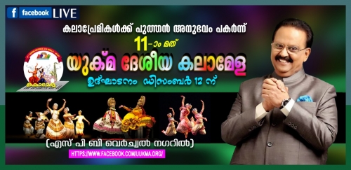 യശഃശരീരനായ സംഗീത ചക്രവര്ത്തി എസ് ബി ബാലസുബ്രഹ്മണ്യത്തിന് ആദരവ് അര്പ്പിച്ചുകൊണ്ട്, പതിനൊന്നാമത് യുക്മ ദേശീയ കലാമേള എസ് പി ബി വെര്ച്വല് നഗറില് ഡിസംബര് 12 ശനിയാഴ്ച ഉദ്ഘാടനം ചെയ്യപ്പെടും. കോവിഡ് മഹാമാരിയുടെ പശ്ചാത്തലത്തില് സാങ്കേതിക വിദ്യയുടെ സാധ്യതകള് പ്രയോജനപ്പെടുത്തിക്കൊണ്ട് നടക്കുന്ന യുക്മ ദേശീയ കലാമേള പ്രവാസ ലോകത്തിന് വേറിട്ട അനുഭവമാക്കാനുള്ള തയ്യാറെടുപ്പിലാണ് സംഘാടകര്.