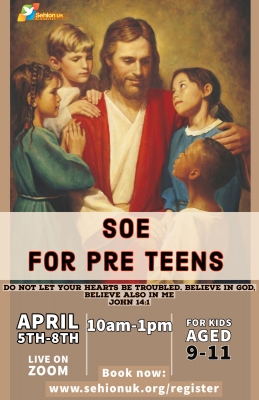 സെഹിയോന് യുകെ മിന്സ്ട്രിയുടെ സ്കൂള് ഓഫ് ഇവാഞ്ചലൈസേഷന് ടീം , ജീവിത വഴികളില് അടിപതറാതെ മുന്നേറുവാന് യേശുവിനെ രക്ഷകനും നാഥനുമായി സ്വീകരിക്കുവാന് ഉദ്ബോധിപ്പിച്ചുകൊണ്ട് , വലിയ നോമ്പില് ക്രിസ്തുനാഥന്റെ പീഡാസഹനവും പുനഃരുത്ഥാനവും പൂര്ണ്ണമായും സ്വയം വിശുദ്ധീകരണത്തിന് ഓരോരുത്തരെയും ഒരുക്കിക്കൊണ്ടും , കുട്ടികള്ക്കും ടീനേജുകാര്ക്കുമായി സ്കൂള് അവധിക്കാലത്ത് ഏപ്രില് 5 മുതല് 8 വരെ (തിങ്കള് , ചൊവ്വ , ബുധന് , വ്യാഴം ദിവസങ്ങളില് ) ഓണ്ലൈനില് ZOOM ആപ്പ് വഴി രണ്ട് ധ്യാനങ്ങള് നടത്തുന്നു.