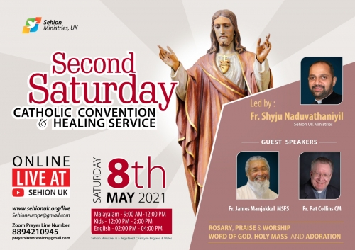 രോഗ പീഡകള്ക്കെതിരെ പ്രാര്ത്ഥനയുടെ കോട്ടകള് തീര്ത്തുകൊണ്ട് ,ദേശ ഭാഷാ വ്യത്യാസമില്ലാതെ അനേകര് പങ്കെടുക്കുന്ന , വി. കുര്ബാന,വചന പ്രഘോഷണം, ആരാധന എന്നിവ ഉള്പ്പെടുന്ന രണ്ടാം ശനിയാഴ്ച ബൈബിള് കണ്വെന്ഷനിലേക്ക് ശനിയാഴ്ച രാവിലെ 9 മുതല് സെഹിയോന് മിനിസ്ട്രി ഏവരെയും ക്ഷണിച്ചു.