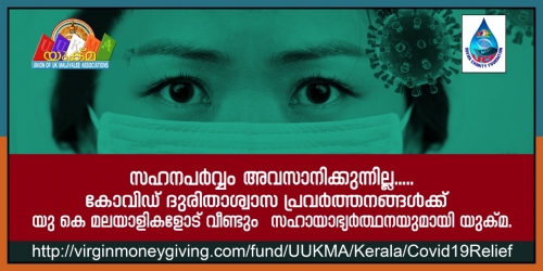 സ്വപ്നങ്ങള് തകര്ത്തെറിഞ്ഞുകൊണ്ട് കോവിഡ് താണ്ഡവമാടുമ്പോള്, കേഴുന്ന കേരളത്തെ ചേര്ത്ത്പിടിക്കാന് യുക്മ യു കെ മലയാളികളോട് കാരുണ്യത്തിനായി അഭ്യര്ത്ഥിച്ചിരുന്നു. യു കെ യിലെ മലയാളി അസോസിയേഷനുകളുടെ ദേശീയ സംഘടനയായ യൂണിയന് ഓഫ് യുണൈറ്റഡ് കിംഗ്ഡം മലയാളി അസ്സോസിയേഷന്സ് യുക്മ, പിറന്ന നാടിനോട് കടമ മറക്കാത്തവരാണ് പ്രവാസികള് എന്ന് ഒരിക്കല് കൂടി തെളിയിക്കുവാന് ഈ അവസരം വിനിയോഗിക്കണമെന്ന് അഭ്യര്ത്ഥിക്കുകയാണ്.