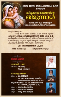 തിരുന്നാള് ആഘോഷങ്ങളില് പങ്കെടുത്ത് പരിശുദ്ധ ദൈവമാതാവിന്റെ അനുഗ്രഹം പ്രാപിക്കാന് ഏവരെയും സ്നേഹപൂര്വം