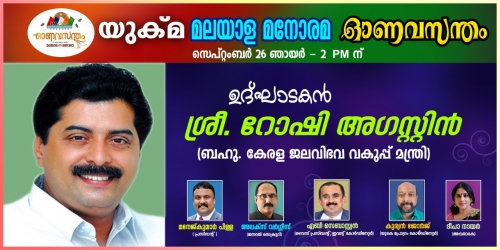 ലോകത്തിലെ ഏറ്റവും വലിയ പ്രവാസി മലയാളി ദേശീയ സംഘടനയായ യുക്മയും മലയാള മനോരമയും ചേര്ന്ന് സംഘടിപ്പിക്കുന്ന ഓണാഘോഷ പരിപാടി 'ഓണവസന്തം 2021' 26 ന് ഉച്ചകഴിഞ്ഞു 2 ന് ഓണ്ലൈന് പ്ലാറ്റ്ഫോമില് കേരള ജലവിഭവ വകുപ്പ് മന്ത്രി റോഷി അഗസ്റ്റിന് ഉദ്ഘാടനം ചെയ്യുന്നു. മന്ത്രി പദമേറ്റെടുത്ത് കുറഞ്ഞ സമയത്തിനുള്ളില് തന്നെ തന്റെ മികവ് തെളിയിച്ച് മുന്നേറുന്ന റോഷി അഗസ്റ്റിന് 2001 മുതല് ഇടുക്കിയുടെ പ്രിയപ്പെട്ട MLA യാണ്. വിദ്യാര്ത്ഥി യുവജന സംഘടനാ പ്രവര്ത്തനങ്ങളിലൂടെ തന്റെ നേതൃപാടവം തെളിയിച്ച റോഷി അഗസ്റ്റിന് കേരള കോണ്ഗ്രസ് (എം) സംസ്ഥാന ജനറല് സെക്രട്ടറി പദം കൂടി വഹിക്കുന്നു.
