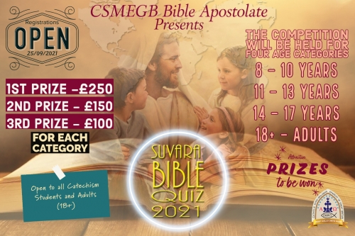 ഈ വര്ഷത്തെ സുവാറ ബൈബിള് ക്വിസ് മത്സരങ്ങളുടെ രജിസ്ട്രേഷന് ആരംഭിച്ചു. രണ്ടായിരത്തില്പരം കുട്ടികള് മത്സരിച്ച യൂറോപ്പിലെത്തന്നെ ഏറ്റവും വലിയ ഓണ്ലൈന് ബൈബിള് ക്വിസ് മത്സരമാണ് ഗ്രേറ്റ് ബ്രിട്ടന് രൂപത വിശ്വാസപരിശീലനക്ലാസ്സുകളിലെ കുട്ടികള്ക്കായി സുവാറ എന്ന പേരില് കഴിഞ്ഞ വര്ഷം സംഘടിപ്പിച്ചത് . കുട്ടികളുടെ പങ്കാളിത്തം കൊണ്ടും ദൈവജനത്തിന്റെ സഹകരണംകൊണ്ടും ഏറെ പ്രശംസപിടിച്ചുപറ്റിയ ഈ മത്സരം കുട്ടികള് ബൈബിള് പഠിക്കുക എന്ന ലഷ്യത്തിലുറച്ചുനിന്നുകൊണ്ട് ഈ വര്ഷവും നടത്തപെടുകയാണ്.