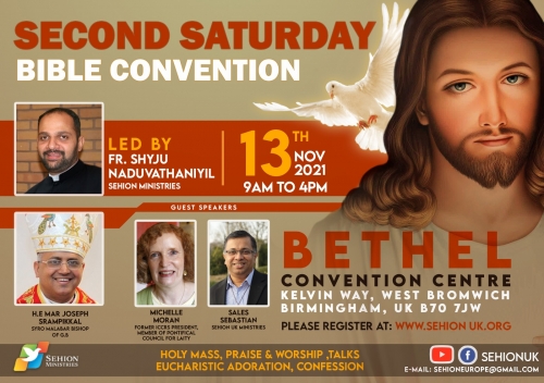 ബര്മിംങ്ഹാം: പരിശുദ്ധാത്മ കൃപയാല് ആത്മാഭിഷേകത്തിന്റെ പൂര്ണ്ണതയില് അനേകരില് വിടുതലും രോഗശാന്തിയും ജീവിത നവീകരണവും സാദ്ധ്യമാക്കിക്കൊണ്ടിരിക്കുന്ന സെഹിയോന് യുകെയുടെ പ്രതിമാസ രണ്ടാം ശനിയാഴ്ച ബൈബിള് കണ്വെന്ഷന് 13 ന് ബര്മിങ്ഹാം ബഥേല് സെന്റെറില് നടക്കും. സെഹിയോന് യുകെ യുടെ ആത്മീയ നേതൃത്വവും പ്രമുഖ ആത്മീയ രോഗശാന്തി ശുശ്രൂഷകനുമായ ഫാ.ഷൈജു നടുവത്താനിയില് കണ്വെന്ഷന് നയിക്കും.