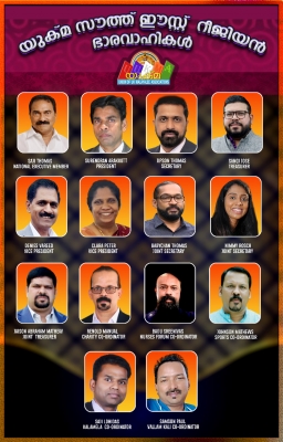 പ്രസിഡന്റായി സുരേന്ദ്രന് ആരക്കോട്ട് ഡാര്ട്ഫോര്ഡ് മലയാളീ അസോസിയേഷന് (DMA) തിരഞ്ഞെടുക്കപ്പെട്ടു. യുക്മ ന്യൂസ് അസോസിയേറ്റഡ് എഡിറ്ററും, മുന് ഡാര്ട്ഫോര്ഡ് മലയാളി അസോസിയേഷന് പ്രസിഡന്റുമാണ്. സെക്രട്ടറിയായി ജിപ്സണ് തോമസ് (മലയാളീ അസോസിയേഷന് റെഡ്ഹില് സറേ (MARS), ട്രഷററായിസനോജ് ജോസും (സീമ ഈസ്റ്റ്ബോണ് (SEEMA) തിരഞ്ഞെടുത്തപ്പെട്ടു.